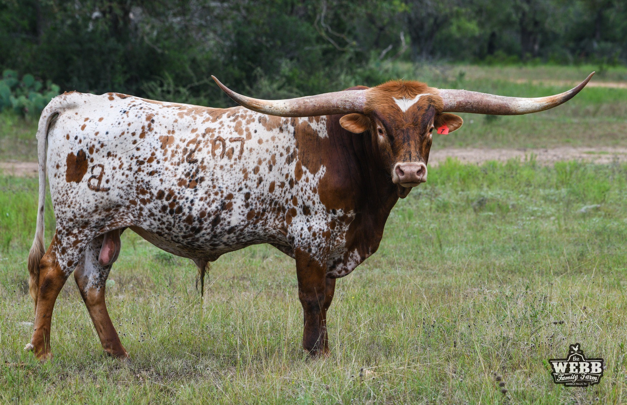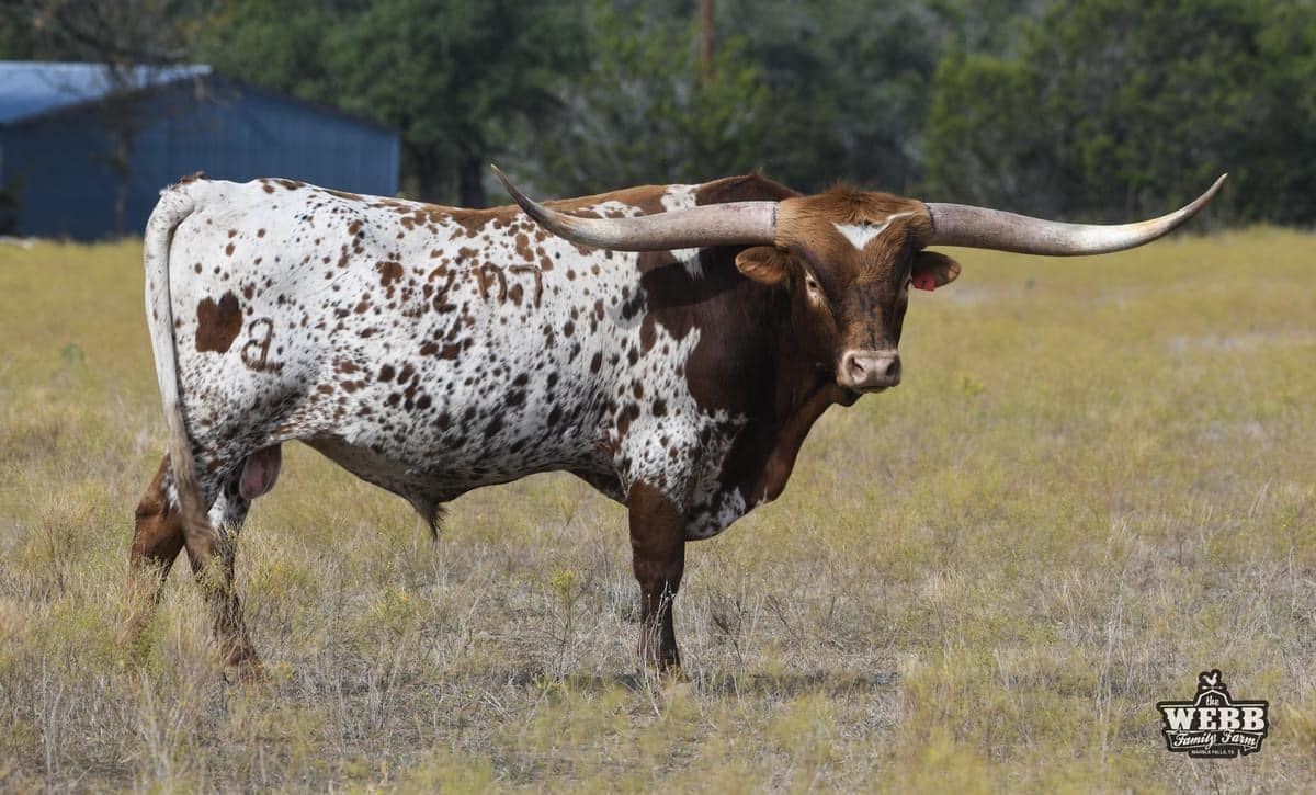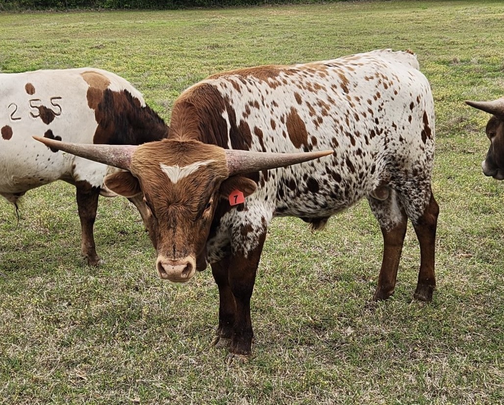 Son of the over 102"TTT M.C Hangin' Tuff, bringing in the 108"TTT Cowboy Tuff Chex (2x), and the legendary over 100"TTT BL Rio Catchit (2x). His Dam is a big horned daughter of Rebel HR, bringing in HR Slam's Rose and LLL Rosemary. His historical pedigree includes JP Rio Grande (2x), Hunts Command Respect (2x), CV Cowboy Casanova, Tabasco, GF G-MAN, VJ Tommie (AKA UNLIMITED), Coach, Classic, and Superior! Jericho is built like a tank, with excellent conformation, color, and horns that are exceeding all expectations! Thank you Bob and Pam Loomis for this opportunity to share your legendary breeding! We are excited about his future, and the possibilities he brings to our program!